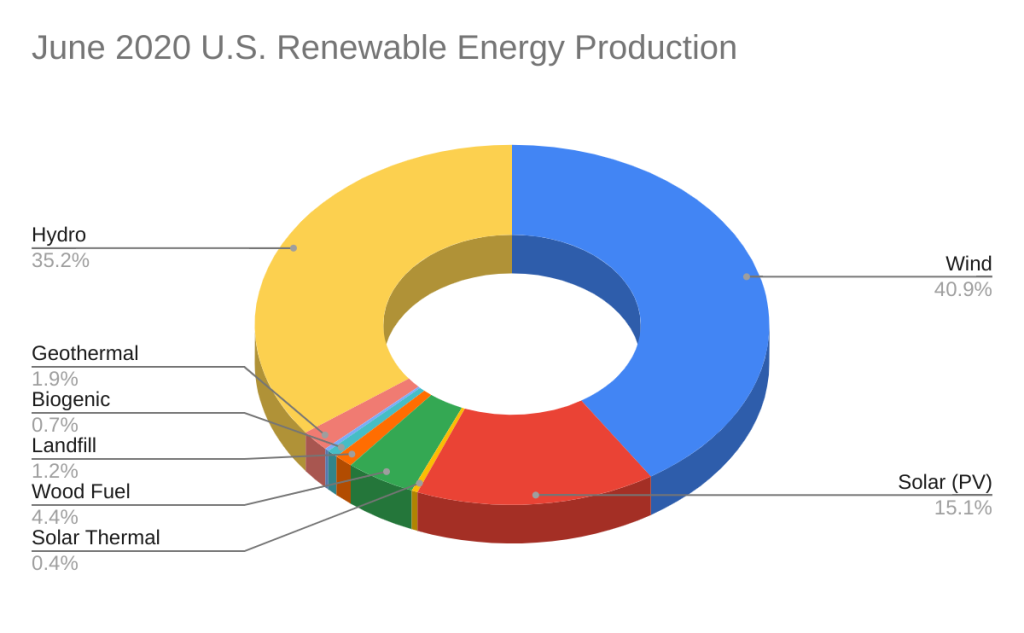 Each month, the United States Energy Information Administration (EIA) releases more information and data about the current state of federal energy. In June of 2020, there was an estimated total of 73,980 Thousand Megawatt Hours of renewable energy generated in large-scale and small-scale systems. Below, here is a breakdown of that figure by each power source.